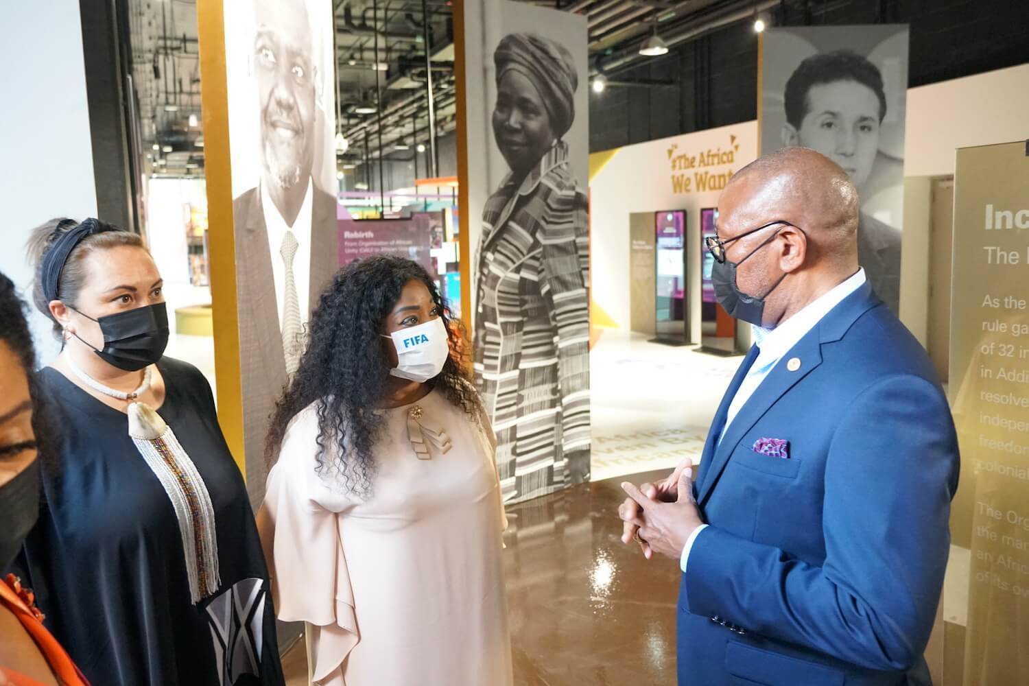 The African Union at Expo 2020 Dubai welcomed to its pavilion, the FIFASecretaryGeneral, Her Excellency Fatma Samba Diouf Samoura on Sunday the 17th of October 2021. H.E. Samoura was accompanied on the visit by a FIFA delegation that comprised former Samoan international and the now Chief of Women's Football Officer for FIFA, Sarai Bareman of New Zealand alongside Youri Djorkaeff, 1998 World Cup winner with France and now CEO of the FIFA Foundation.